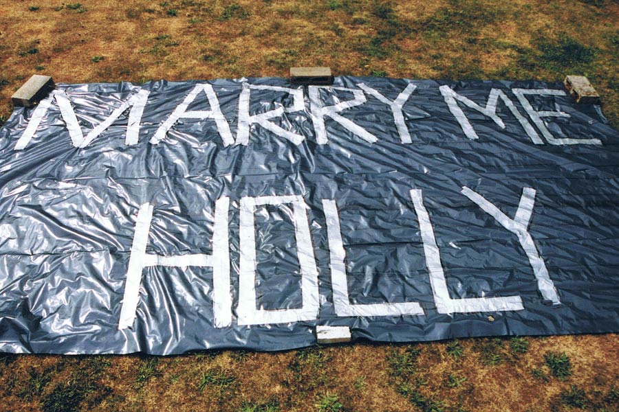 Close-up of the "Marry Me Holly" sign - August 2, 2002
